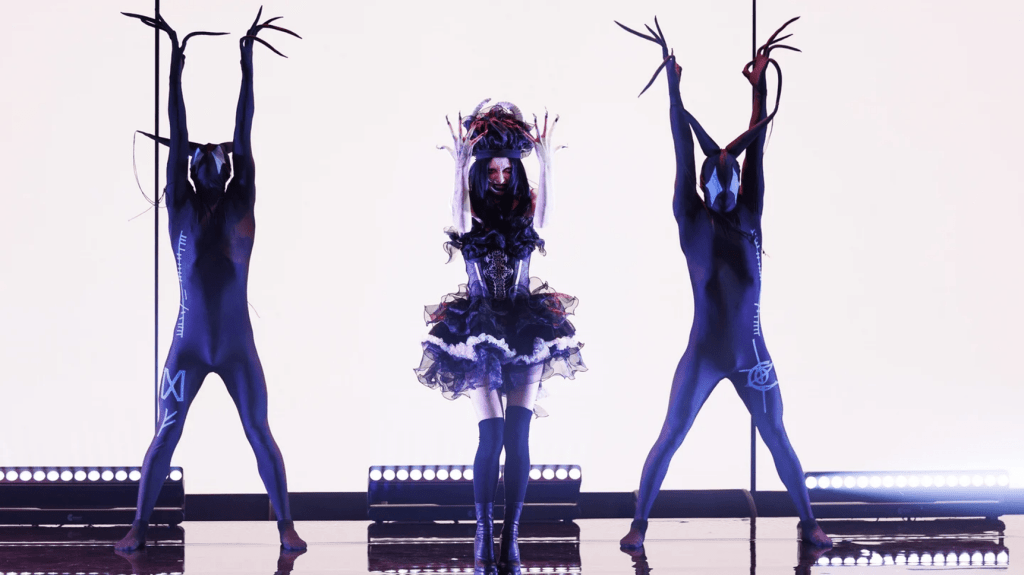 With this entry, we do not know what to expect for the Eurovision stage because every performance so far has brought something different. However, Bambie Thug’s national final performance did give us a taste. Their staging had back up dancers in black morph suits with elongated appendages and whimsical fantasy images on an LED screen. The budget the Ireland delegation often seems to be working with is always a cause for concern, but “Doomsday Blues” seems like it can take a little a long way.